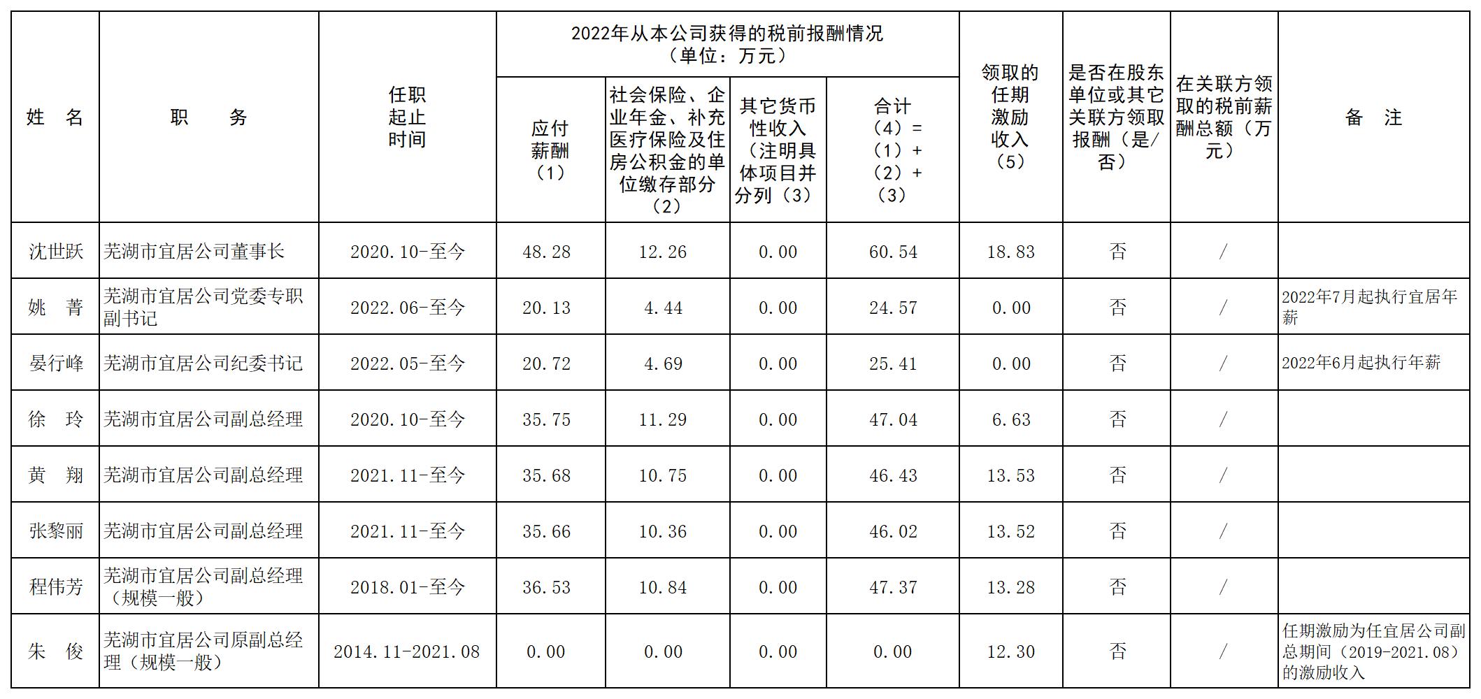 2022年度蕪湖宜居投資(集團)有限公司領導人員薪酬信息披露表